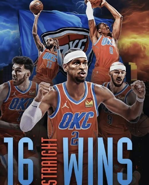 12月11日,雷霆138比89击败太阳,取得赛季最长16连胜,截至目前前25场比赛,雷霆24胜1负,追平15-16赛季时期的勇士!